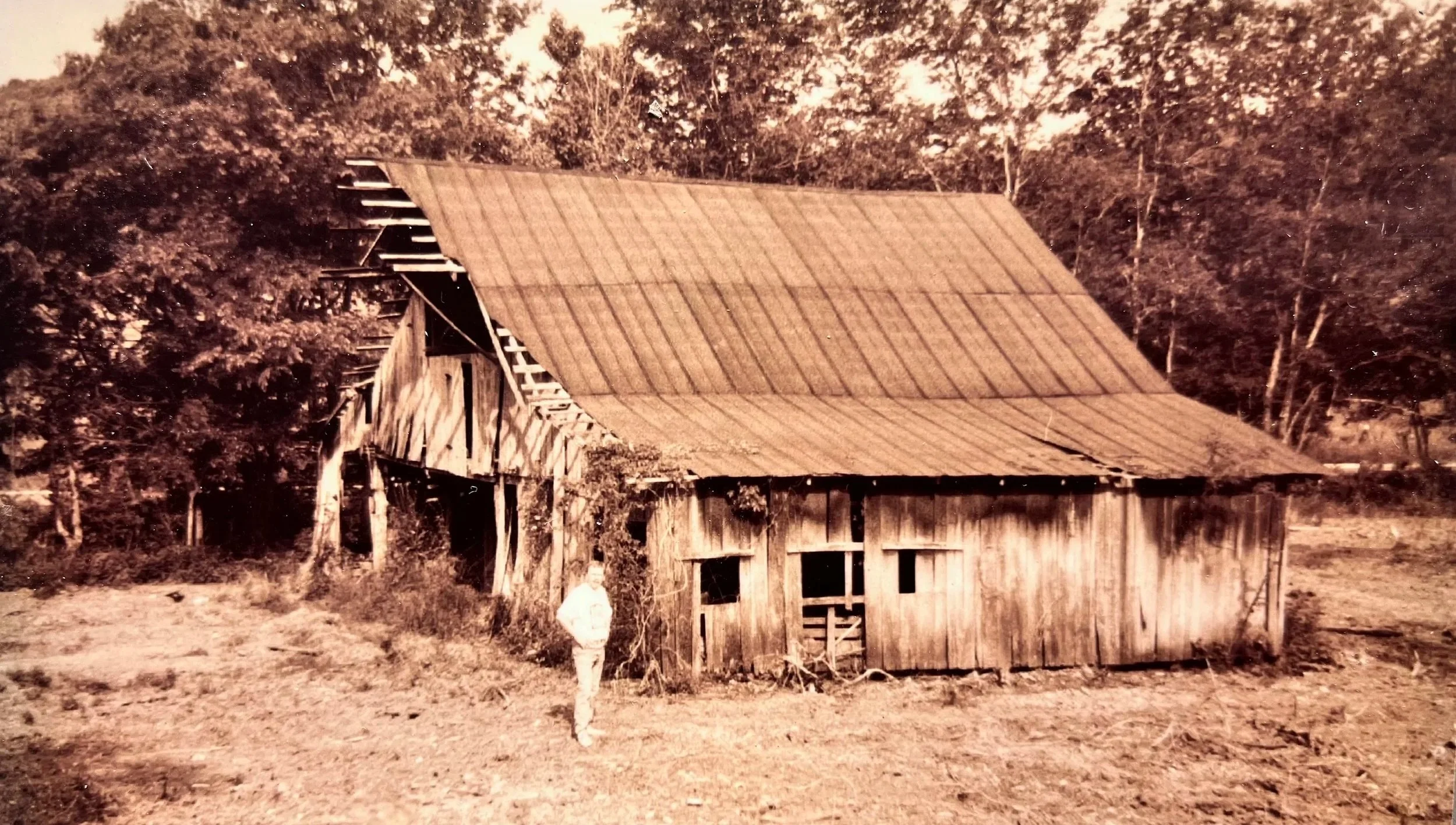 Built entirely from reclaimed oak pulled from a century-old barn south of Columbia, Tenn. (pictured below), this side table measures 12” x 22” x 24” tall and features turned legs, dentil molding, and quatrefoil corner brackets.